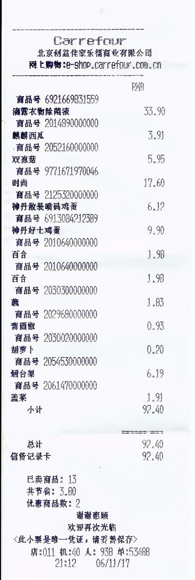 2006年11月17日俺家在家乐福购了二盒“神丹”鸡蛋,下面是凭据(今天退货时被家乐福收回了):