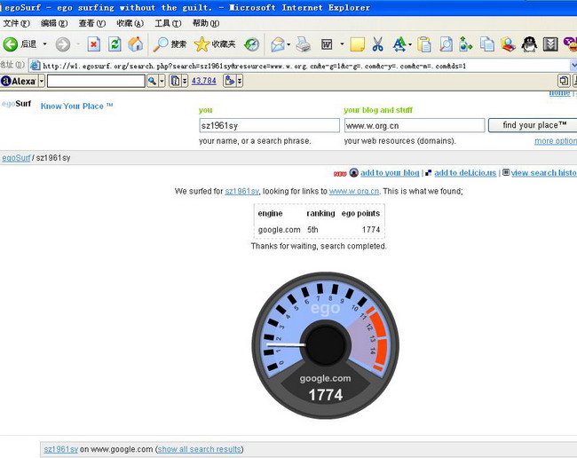 第一次是 2006-1-14 11:15:00 《今天发现一个好玩的Blog“温度计”》(http://w.org.cn/user1/4/archives/2006/499.html ),相距17天后由最初778升到1316了: