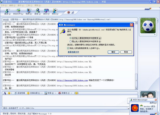 2006-3-8 13:52:08 幻影书生: 你等,我用我MSN加你 (以下见抓图)