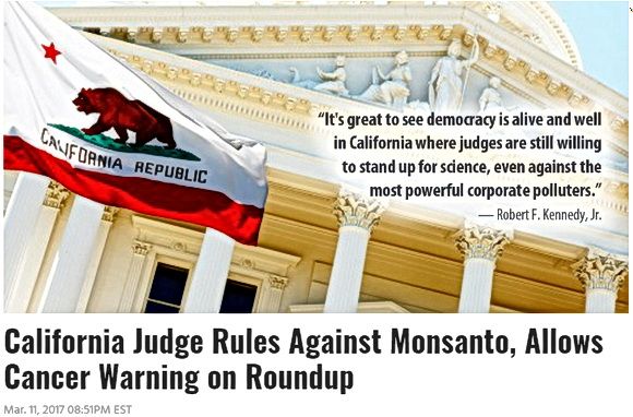 这就是美国加州判案的意义:世界上第一家地方法院用法律确认:与转基因作物相伴而用(86%转基因作物必须使用)的生物农药“草甘膦除草剂(Roundup,中文名:农达 )”可以改癌!