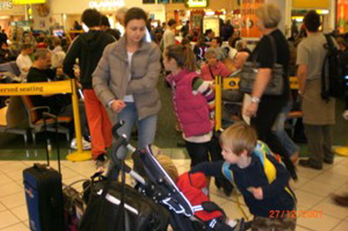 Mayhem at the airport on our way to the snow