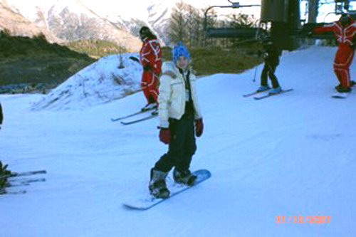 Emma trying out the snow board