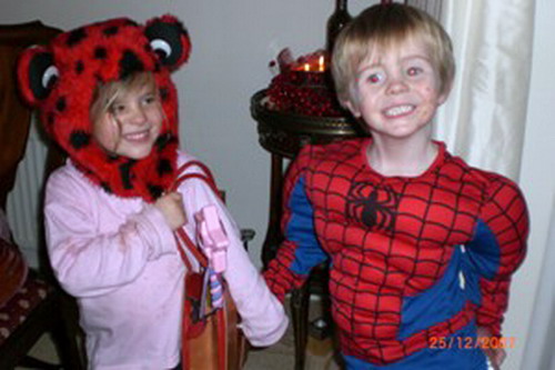 William trying out his new Spiderman kit